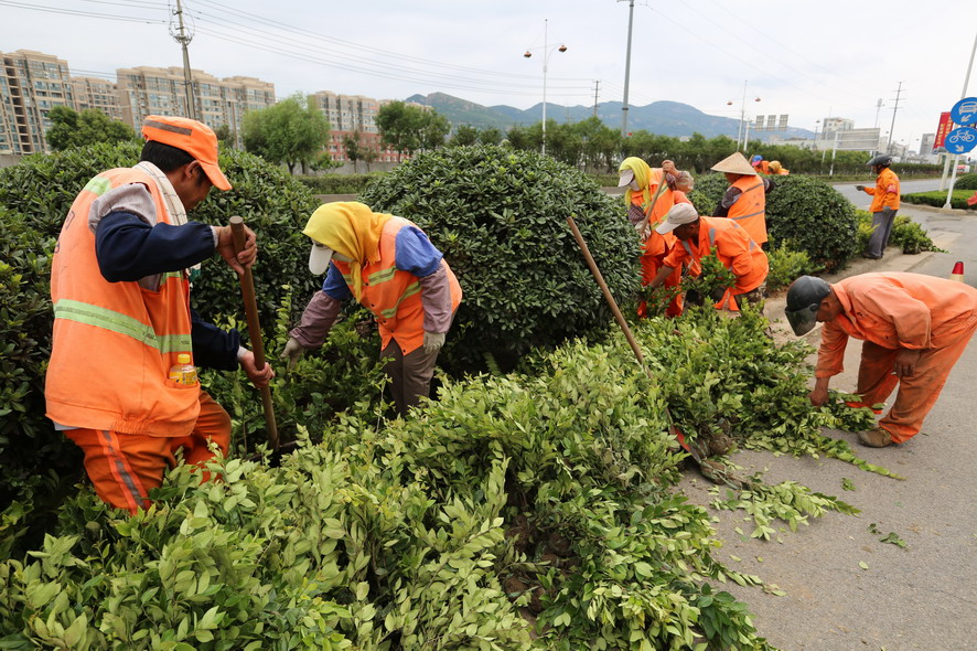 819日在火車站廣場及周邊路段,40多名綠化、保潔工人及灑水車、清掃車等全力保障火車站重點地段的環(huán)境衛(wèi)生,為過往旅客提供一個干凈整潔舒心的出行環(huán)境。據(jù)現(xiàn)場負(fù)責(zé)人龔本國介紹,隨著創(chuàng)衛(wèi)工作力度的進(jìn)一步加大,開發(fā)區(qū)對我們火車站廣場及周邊路段的環(huán)境衛(wèi)生提出了更高的要求,我們對會泉路商戶門前的綠化進(jìn)行了補(bǔ)植,種植紅葉石楠等苗木600多平方,每天專門安排一輛灑水車對火車站廣場及周邊路段進(jìn)行巡回清洗清掃,確保路面干凈無塵土,對廣場站臺、護(hù)欄、果皮箱、路燈桿、花壇進(jìn)行清理擦洗,對下水道進(jìn)行清掏,蓋板更換維修。為確保創(chuàng)衛(wèi)工作任務(wù)高標(biāo)準(zhǔn)高質(zhì)量完成,連日來,綠化養(yǎng)護(hù)、環(huán)衛(wèi)保潔工人天天早上6點上班,到晚上10點下班,中午吃飯休息只有一個小時,每天工作10多個小時,為創(chuàng)衛(wèi)工作做了很多實實在在的事情,他們真的很不易,很辛苦,只因有了他們的辛勤勞動、無私奉獻(xiàn),城市環(huán)境衛(wèi)生才會越來越好。