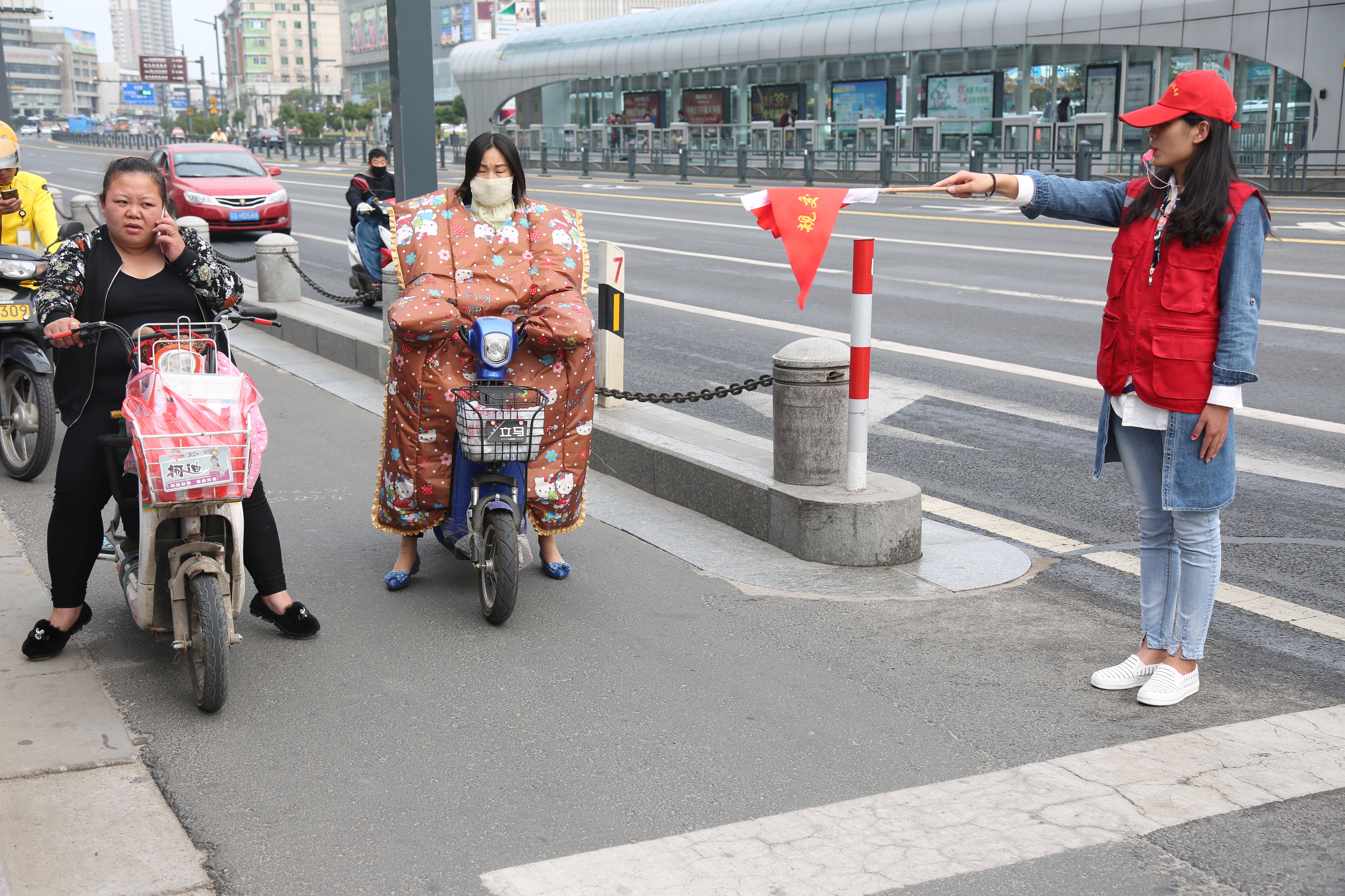1011早上8:30,參與本次活動的青年志愿者準(zhǔn)時到達(dá)中山西路與東園路的交叉路口,鄒警官對志愿者們進(jìn)行了崗前培訓(xùn)。青年志愿者統(tǒng)一著裝,手持紅旗,站在交通道口對來往行人及非機(jī)動車輛進(jìn)行疏導(dǎo)及文明出行宣傳提醒行人走斑馬線過街、提醒車輛禮讓斑馬線,同時也對不遵守交通規(guī)則的行為進(jìn)行勸阻。本次志愿服務(wù)活動持續(xù)了一整天,青年志愿者們身體力行,通過參與“文明交通”志愿者服務(wù)工作,保證了服務(wù)片區(qū)的交通有序,為港城創(chuàng)衛(wèi)工作貢獻(xiàn)一份力量。