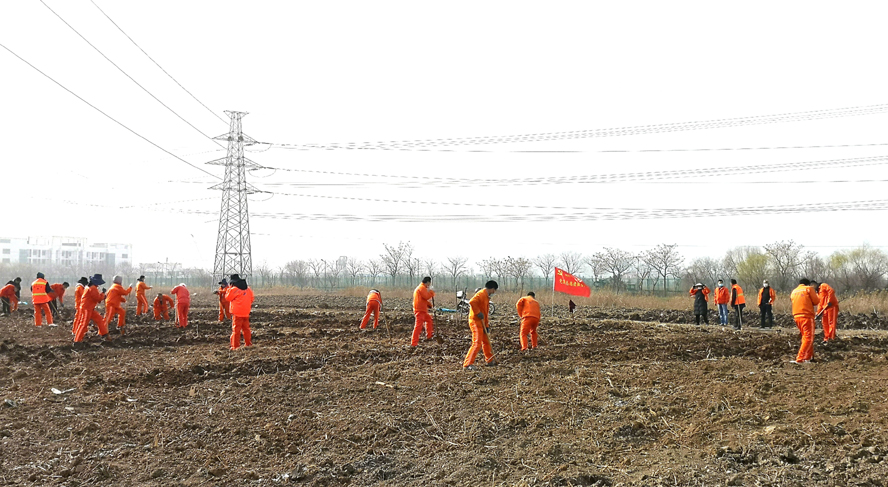 為保證植樹質(zhì)量,該公司配備多名專業(yè)技術(shù)人員進(jìn)行全程技術(shù)指導(dǎo)。上午8時(shí)許,在移苗現(xiàn)場,一臺(tái)挖掘機(jī)轟隆隆地作業(yè)著,小心翼翼的將一棵棵大樹苗連根拔起,在保證不擠壓的情況下,輕抬輕放,裝苗運(yùn)輸。在栽苗活動(dòng)現(xiàn)場,全體工作人員戴好頭罩、手套等防護(hù)用具,在統(tǒng)一指揮下,彼此間隔1米左右,擼起袖子、揮著鐵鍬、扛著鋤頭飛快地投入到栽苗植樹作業(yè)中。大家分工協(xié)作,有的開槽挖坑;有的栽植樹苗;有的抬木扶苗;有的回填新土;有的纏繩護(hù)樹;有的澆水保濕……到處都是忙碌的身影,整個(gè)植樹活動(dòng)現(xiàn)場一片熱火朝天的繁忙景象。放眼望去,在明媚的春光中,一排排新栽下的樹苗迎風(fēng)挺立,生機(jī)勃勃,組成了一道道靚麗的風(fēng)景線。
