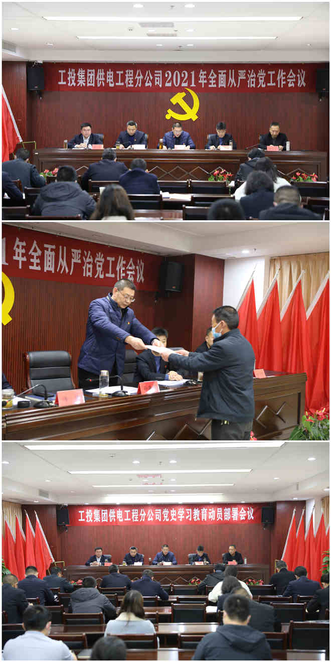 上半場,在公司2021年全面從嚴治黨工作會議上,全體參會人員首先觀看了全面從嚴治黨工作警示教育片。隨后,黨委書記、經(jīng)理孫政權(quán)在題為《強化政治建設(shè) 聚焦深度融合 以大黨建引領(lǐng)公司高質(zhì)量發(fā)展新征程》的黨委工作報告中指出,過去的一年,面對新冠疫情和經(jīng)濟下行的雙重壓力,公司黨委深入學(xué)習(xí)貫徹習(xí)近平新時代中國特色社會主義思想,以“不忘初心、牢記使命”主題教育為主線,扎實開展“雙融雙創(chuàng)”黨內(nèi)主題教育實踐活動,壓實管黨治黨責(zé)任、勇于直面困難挑戰(zhàn),推動公司經(jīng)濟在逆境中取得突破,黨建工作取得了顯著成效。報告強調(diào),2021年黨委工作的指導(dǎo)思想是:深入學(xué)習(xí)貫徹習(xí)近平新時代中國特色社會主義思想、十九屆五中全會精神等內(nèi)容,以“全面從嚴治黨”為統(tǒng)領(lǐng),以“黨史學(xué)習(xí)教育”為主線,以打造“工電先鋒”黨建品牌為抓手,扎實開展“奮進新時代、領(lǐng)航開新篇”黨內(nèi)主題教育活動,以“大黨建”整合力量、凝聚人心,發(fā)揮黨的關(guān)鍵引領(lǐng)作用,將黨的政治優(yōu)勢轉(zhuǎn)化為發(fā)展優(yōu)勢。團結(jié)帶領(lǐng)廣大干部員工,統(tǒng)一思想、凝聚力量,勇于擔(dān)當、開拓進取,加大改革創(chuàng)新、轉(zhuǎn)型升級、管理提升推動力度,開創(chuàng)工投供電高質(zhì)量發(fā)展新局面,以改革發(fā)展優(yōu)異成績向建黨100周年獻禮,為扛起“爭當表率、爭做示范、走在前列”重大使命、奪取“十四五”發(fā)展開局首勝作出貢獻。圍繞上述總體要求,重點做好五個方面工作:持續(xù)深化政治建設(shè),推進黨建經(jīng)濟深度融合;持續(xù)強化基層基礎(chǔ),構(gòu)建企業(yè)大黨建格局;持續(xù)推進人才隊伍建設(shè),增強高質(zhì)量發(fā)展推動力;持續(xù)推進黨風(fēng)廉政建設(shè),推進全面從嚴治黨向縱深發(fā)展;持續(xù)推進和諧企業(yè)創(chuàng)建,維護和諧穩(wěn)定發(fā)展的良好局面。