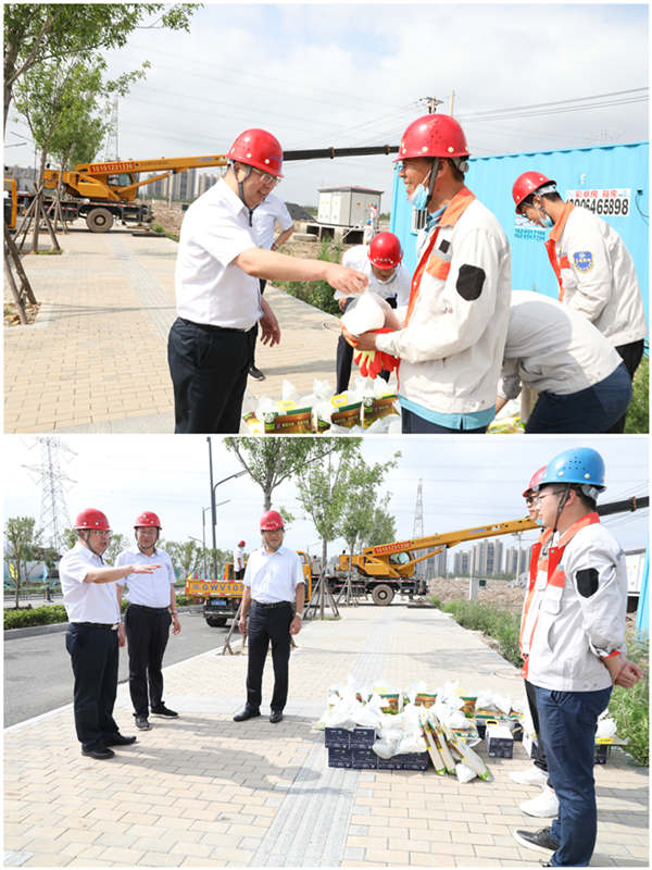 7月28日上午,集團(tuán)公司黨委副書記戴鴻鳴、工會(huì)主席劉承志一行,深入公司施工一線走訪慰問職工,把綠豆、牛奶等防暑降溫用品送到他們手中,在炎炎夏日,為一線職工送去集團(tuán)公司的深切關(guān)懷。