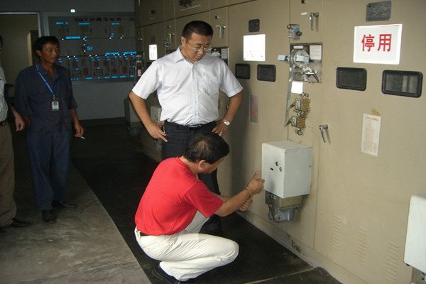 8月31日,公司領(lǐng)導(dǎo)帶領(lǐng)相關(guān)人員深入基層單位進(jìn)行安全檢查,并現(xiàn)場查處安全隱患。圖為黨委書記、總經(jīng)理范益寶在臺南供電所督導(dǎo)安全生產(chǎn)工作。(朱兵、徐磊)