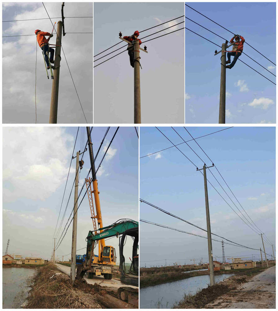 下午305分,青口供電所線路工王兜柱按照所里安排對轄區(qū)線路及設備進行安全巡視,發(fā)現(xiàn)新站線72號高壓桿傾斜嚴重,經(jīng)過仔細勘察發(fā)現(xiàn)電桿根部已經(jīng)斷裂,他立刻上報說明情況故障就是命令供電所立即安排副所長王建前往事故現(xiàn)場再次勘察,聯(lián)系機械、組織人員進行安全交底、具體分工準備材料并以微信群電話等方式,做好停電告知和解釋工作,緩解居民、養(yǎng)殖戶、育苗廠等用戶情緒。513分備用電桿運送到位,按照規(guī)程要求停電、驗電、掛接地,拆除段桿立新桿、重新緊導線,經(jīng)過1個多小時的通力協(xié)作搶修,6點22分新站線500余戶居民,近萬畝池塘,一座揚水站等用戶,全部恢復正常供電。