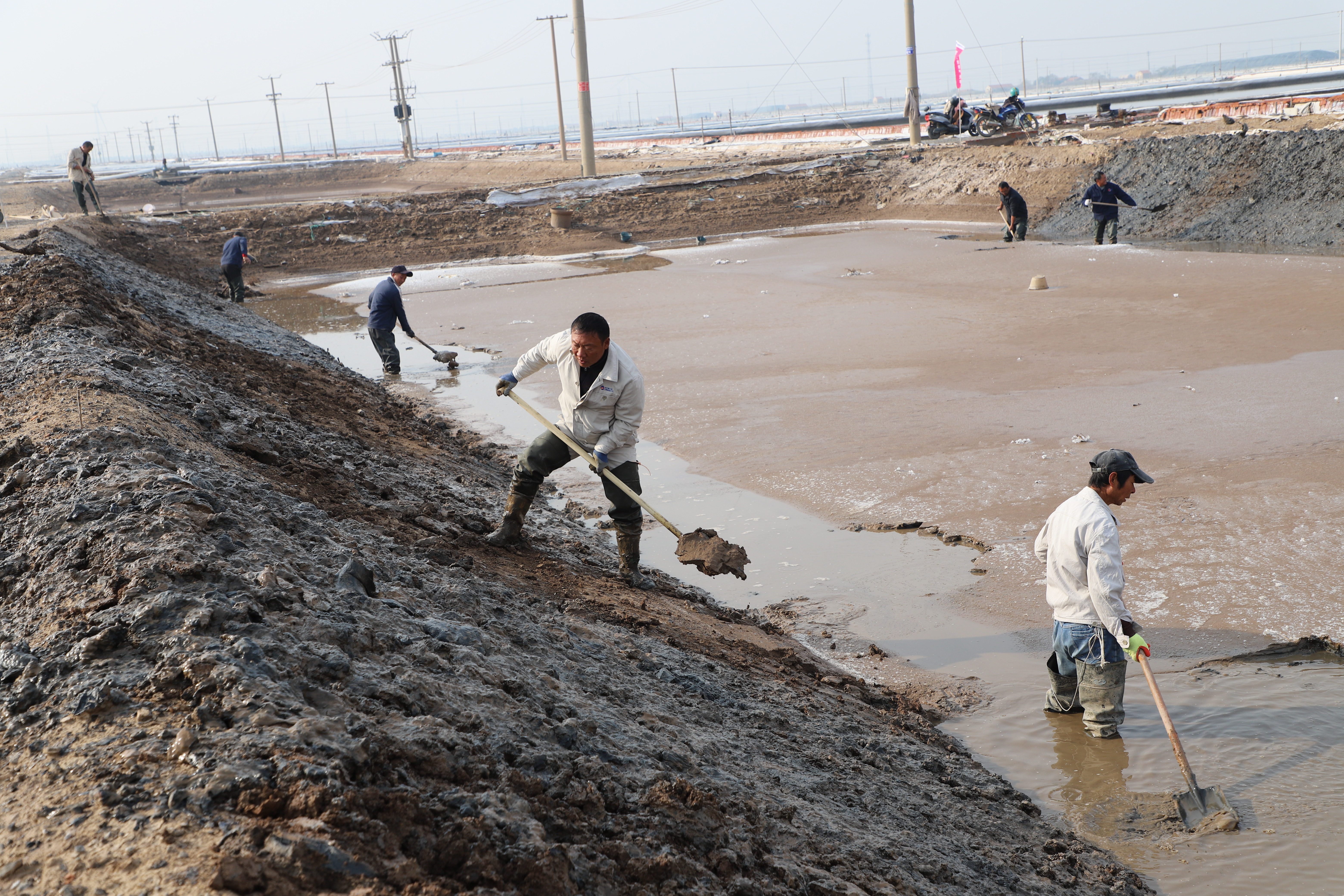 寒冬時(shí)節(jié),暖陽(yáng)之下,鹽廩之旁,曬得黝黑的鹽場(chǎng)產(chǎn)業(yè)工人們按照競(jìng)賽的考核標(biāo)準(zhǔn),做熟泥、打堰墻、做堰頂,護(hù)埝頂、夯埝坡、清塘底,見(jiàn)證了一場(chǎng)技能比拼的盛會(huì)。經(jīng)過(guò)一天的鏖戰(zhàn),盧正兵、靳新邦、匡洪忠?guī)熗饺〉昧顺匮咝拚那叭涣謽?shù)軍、潘成軍、胡繼華師徒取得了土塘清淤的前三名。(西工)