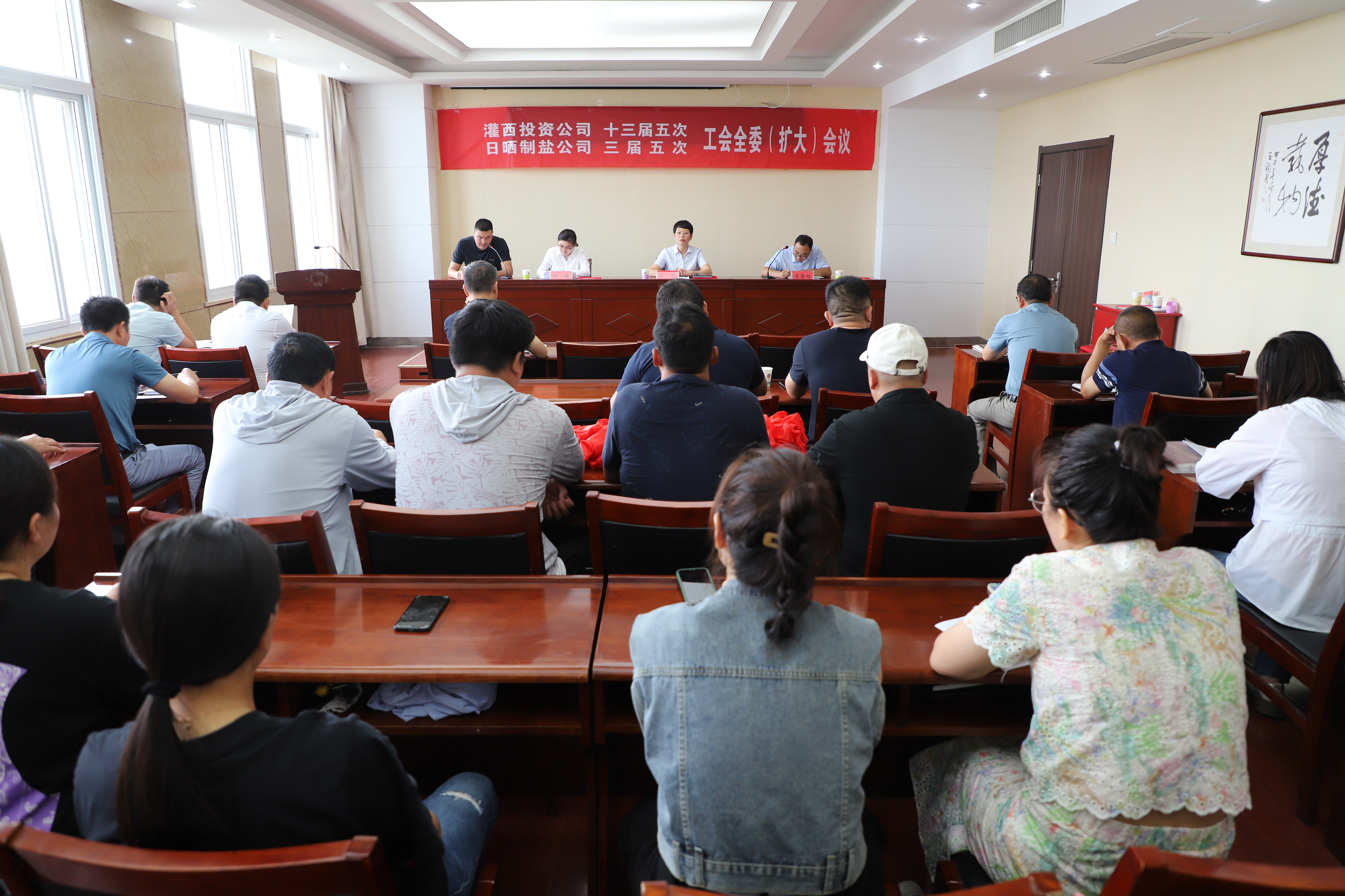 817日,灌西投資公司召開(kāi)十三屆五次、日曬制鹽公司三屆五次工會(huì)全委(擴(kuò)大)會(huì)議,公司黨委副書(shū)記、工會(huì)主席王宏出席會(huì)議,灌西投資公司工會(huì)十三屆、日曬制鹽公司工會(huì)三屆委員會(huì)全體委員,各單位工會(huì)主席、女工委員參加會(huì)議。
