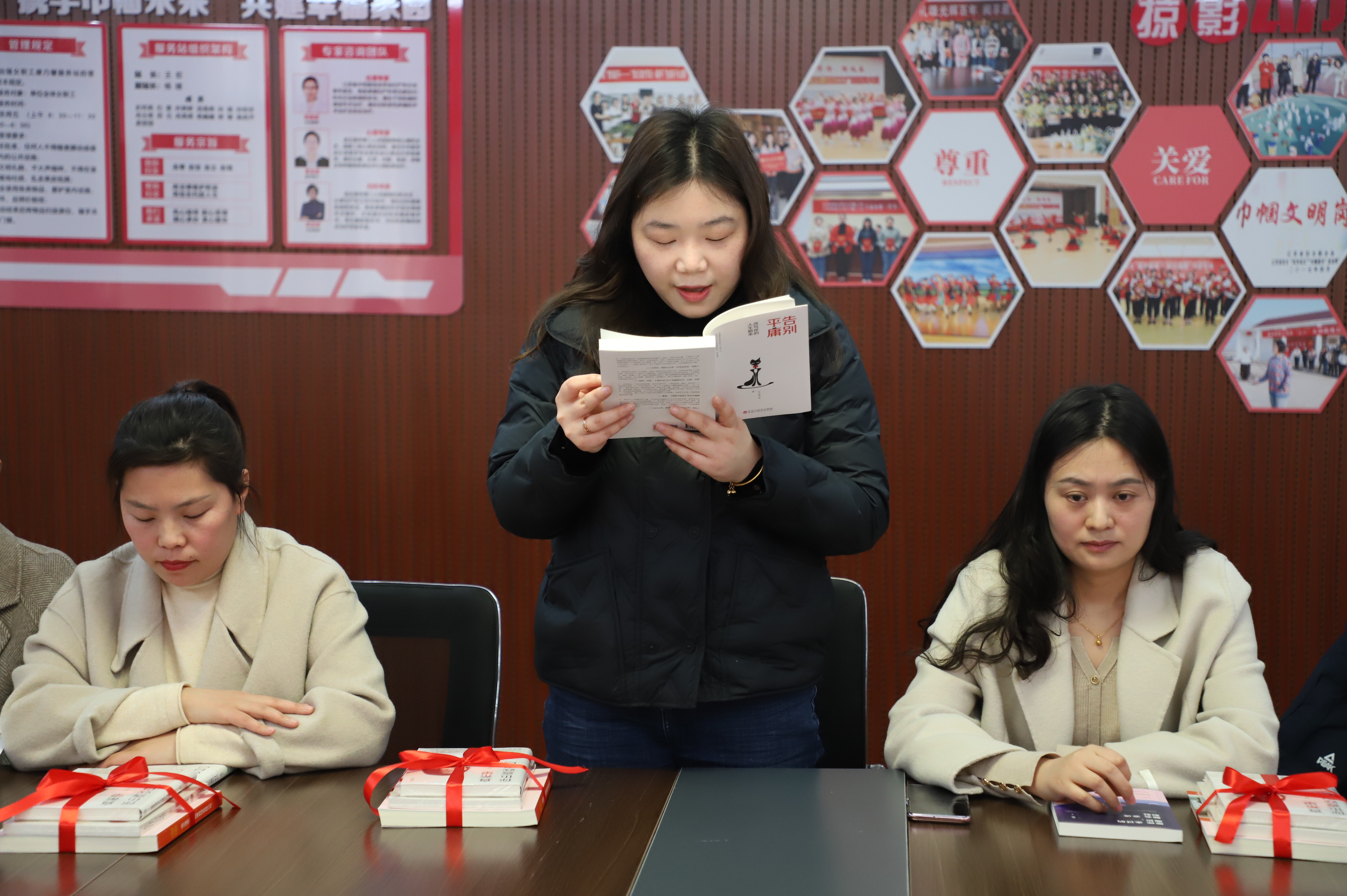 來吧,來吧,相約三八。相約在春光明媚的三月里,相約在閱讀分享的文韻里,相約在康乃馨服務(wù)站里......。3月7日下午14:00,公司工會(huì)開展的“巾幗心向黨”主題書分享會(huì)在女職工朗朗的誦讀中拉開帷幕。來自公司各條戰(zhàn)線上的女職工教育、文學(xué)、哲學(xué)、健康等方面內(nèi)容進(jìn)一步抒發(fā)家國情懷,弘揚(yáng)時(shí)代精神,給我們帶來一場聽覺盛宴。塑造知識(shí)型的“她”,并為女職工贈(zèng)送有關(guān)紅色主題、女性勵(lì)志等方面的書籍,在廣大婦女中營造“好讀書、讀好書、讀書好”的良好氛圍促進(jìn)家庭文明、社會(huì)和諧