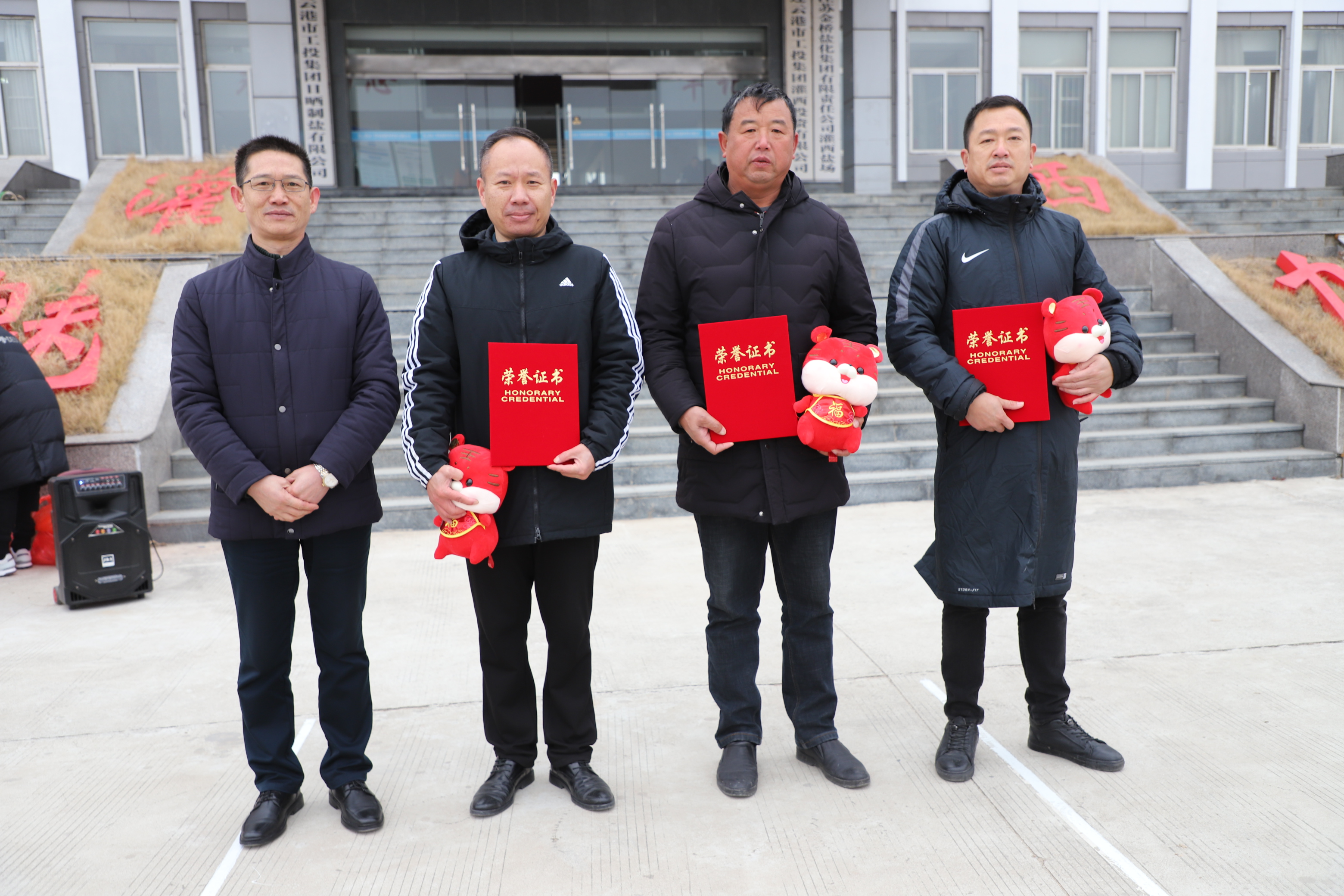 閉幕式上宣布新河制鹽公司、埒南制鹽公司、宵洋物流公司分獲團(tuán)體一至三名,頒發(fā)團(tuán)體以及個人榮譽(yù)證書,為每位獲獎?wù)甙l(fā)放灌西投資公司吉祥物——“鹽寶寶”。(西宣)