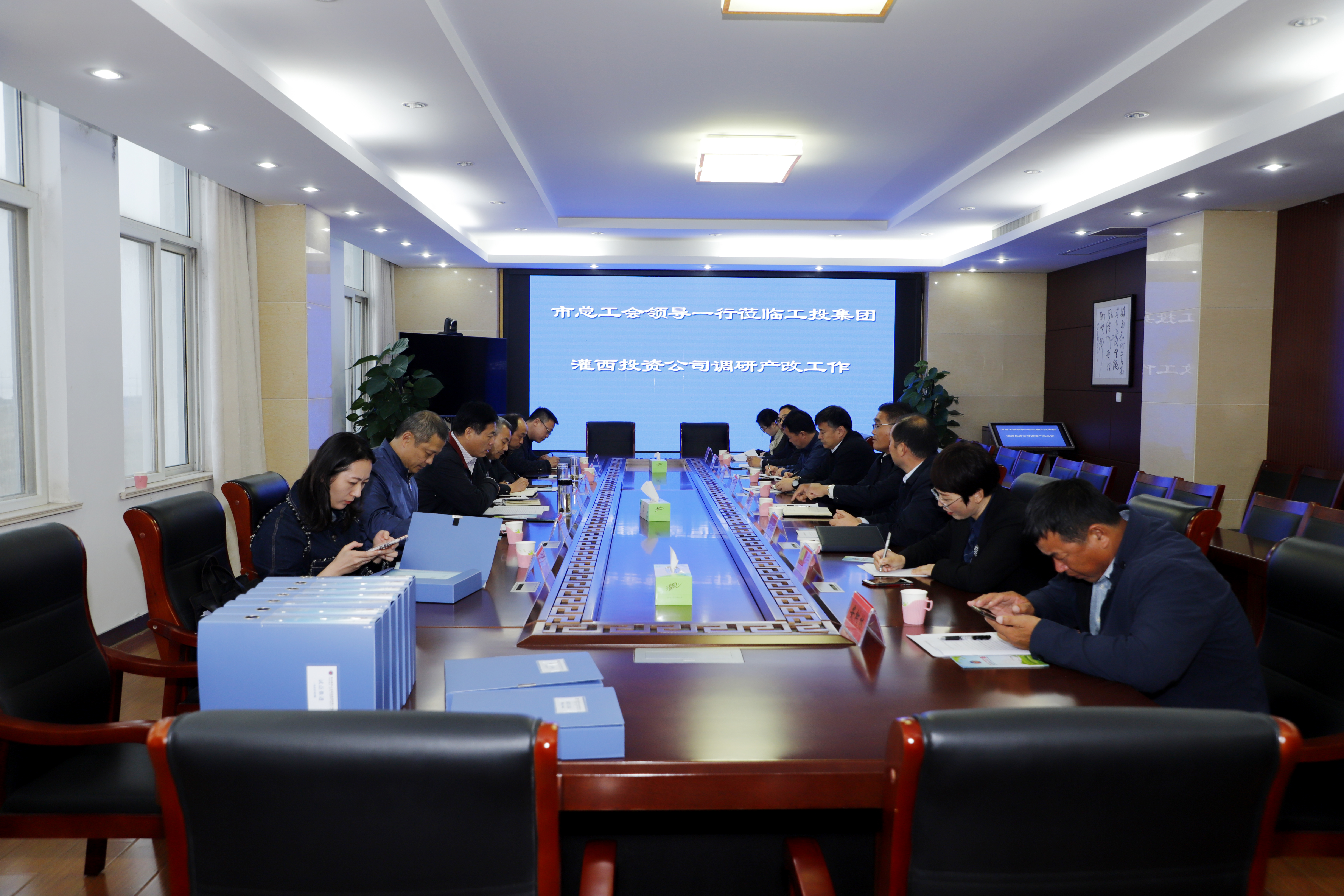 1021,市總工會(huì)黨組書記、副主席丁維杰一行來工投集團(tuán)灌西公司調(diào)研產(chǎn)改工作,集團(tuán)工會(huì)主席劉承志、投資公司黨委書記、董事長、總經(jīng)理李國文、黨委副書記、工會(huì)主席王宏陪同調(diào)研。
