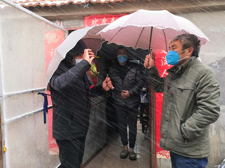 天氣惡劣,擋不住黨員干部誓與疫情作斗爭(zhēng)的腳步;風(fēng)雪雖冷,凍不住抗疫情一線工作者的斗志!他們夜以繼日默默堅(jiān)守、風(fēng)雪之中砥礪前行,必將打贏這場(chǎng)疫情防控狙擊戰(zhàn)!(邱利民)