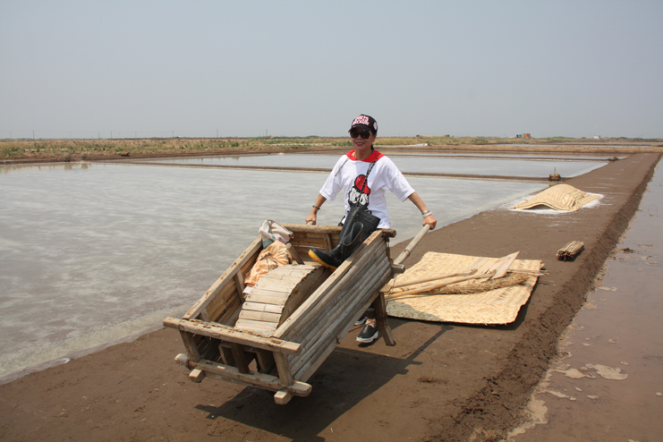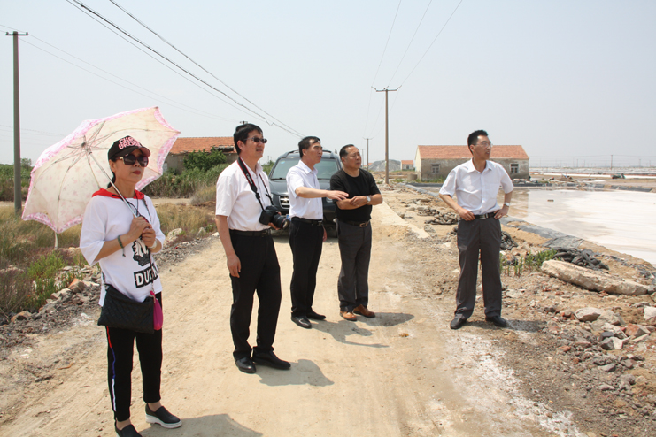 一行人先后到原民國時期公濟制鹽公司的辦公署遺址、早期產鹽平面灘和日曬制鹽公司的扒鹽現場參觀采風。具有百年歷史的原公濟制鹽公司辦公署是灌西鹽場地區(qū)現存最古老的建筑物,也是整個淮鹽地區(qū)僅有的遺跡,隨著歷史的變遷,房屋雖幾經改建,破損嚴重,但主體結構仍然保留了下來,是重要的淮鹽文化物證。位于鈣液復曬區(qū)的早期產鹽平面灘,是前不久為央視攝制組拍攝淮鹽發(fā)展歷史而改造的制鹽平面灘,復制了過去的制鹽工藝及生產過程,在平面灘上,大家拿起收鹽刮板,挑起鹽筐,手推小鹽車,一一體驗一下過去鹽工們的勞動方式。在新河制鹽分公司十班的扒鹽現場,機聲隆隆,潔白鹽廩不斷壯大,這是日曬制鹽公司上半年最后一臺正在扒鹽的機組,其余的七臺扒鹽機組已經先后完成的扒鹽任務,正在進行最后三塊格的扒鹽工作。大家一邊參觀,一邊拍照,通過古今不同時期產鹽方式對比,對過去鹽工們的艱辛勞動和現代制鹽技術的革新,生產力的提高都有了直接的感受,個個感觸頗深。(季興勝)