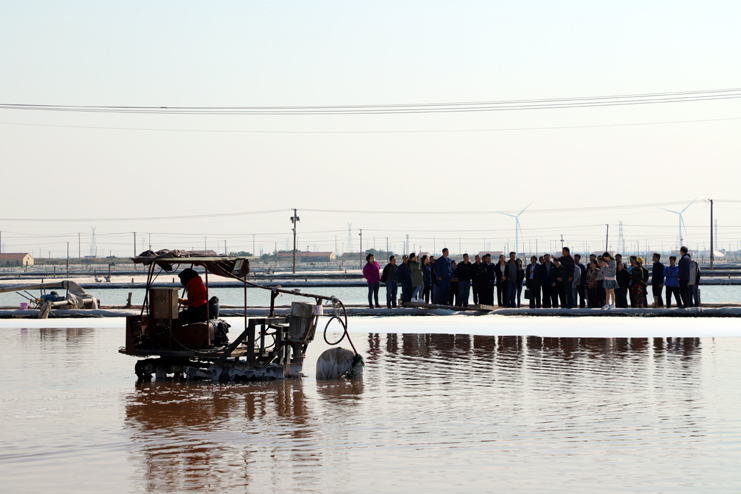 參觀團首先參觀了日曬制鹽公司扒鹽現(xiàn)場,在參觀過程中,聽取了相關(guān)情況的介紹,了解了原鹽的生產(chǎn)發(fā)展演變,參觀感受了現(xiàn)代化帶鹵扒鹽生產(chǎn)場景;隨后,參觀團一行參觀了新河制鹽的黨建室和創(chuàng)新勞模工作室。通過參觀,他們一致表示我公司的黨建室給他們留下了深刻印象,尤其是發(fā)揮勞模創(chuàng)新工作室示范引領(lǐng)作用的做法對他們開展黨建工作有較好的啟示。(張明建)