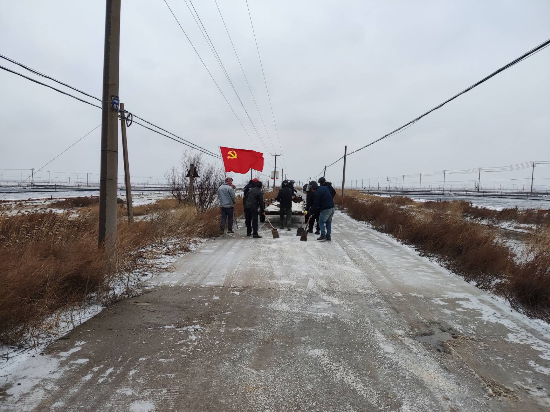 為了確保職工的安全出行,埒南制鹽分公司黨支部的全體黨員帶著鐵鍬、融雪劑,早早地來到現(xiàn)場,開始了緊張而有序的除冰工作。他們不畏嚴(yán)寒,奮力鏟除路面的冰雪,讓道路重新變得暢通無阻,確保職工上下班“路路暢通”。(王石)