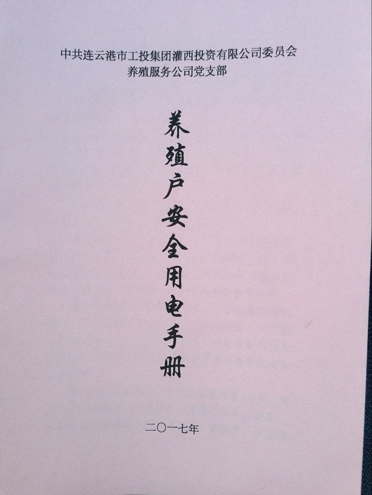 為進(jìn)一步加大對養(yǎng)殖戶的安全用電教育,宣傳安全用電知識,引導(dǎo)養(yǎng)殖戶安全用電。近日,養(yǎng)殖服務(wù)公司黨支部編印了100本《養(yǎng)殖戶安全用電手冊》,并免費發(fā)放到養(yǎng)殖戶手中。
