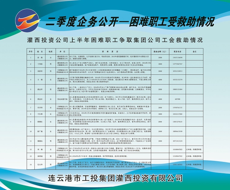 1、人員變動情況:莊忠明同志任埒南制鹽分公司黨支部副書記,免去埒南制鹽分公司副經(jīng)理職務(wù);葛高平同志任連云港宵洋物流公司黨支部書記兼工會主席;唐建軍同志任江蘇省西旺水產(chǎn)實業(yè)有限公司副總經(jīng)理;于同剛同志任連云港市灌西實業(yè)公司制鹽分公司經(jīng)理;唐廣付同志任新河制鹽分公司副經(jīng)理,免去柴門制鹽分公司工會主席職務(wù);王忠良同志任生產(chǎn)服務(wù)公司安全員。