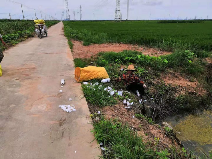 近期正是稻田噴灑農(nóng)藥的高峰期,許多承包戶將噴灑稻田的藥瓶用完后隨意丟棄在田埂邊、路邊,這不僅會污染居住環(huán)境,影響土壤、水體的生態(tài)平衡,還會對周邊池塘養(yǎng)殖安全造成一定的隱患。為此,該公司專門成立“農(nóng)田衛(wèi)士”志愿服務(wù)隊,深入田間地頭撿拾溝渠廢棄農(nóng)藥瓶、塑料袋、漂浮物等垃圾,進(jìn)行集中無害處置。與此同時,加大宣傳力度,使廣大承包戶認(rèn)識到亂扔廢棄農(nóng)藥瓶的危害,勸導(dǎo)承包戶不要隨意丟棄農(nóng)藥垃圾,積極參與到消除農(nóng)藥瓶污染的行動中去,形成全民動員、人人參與的良好氛圍。