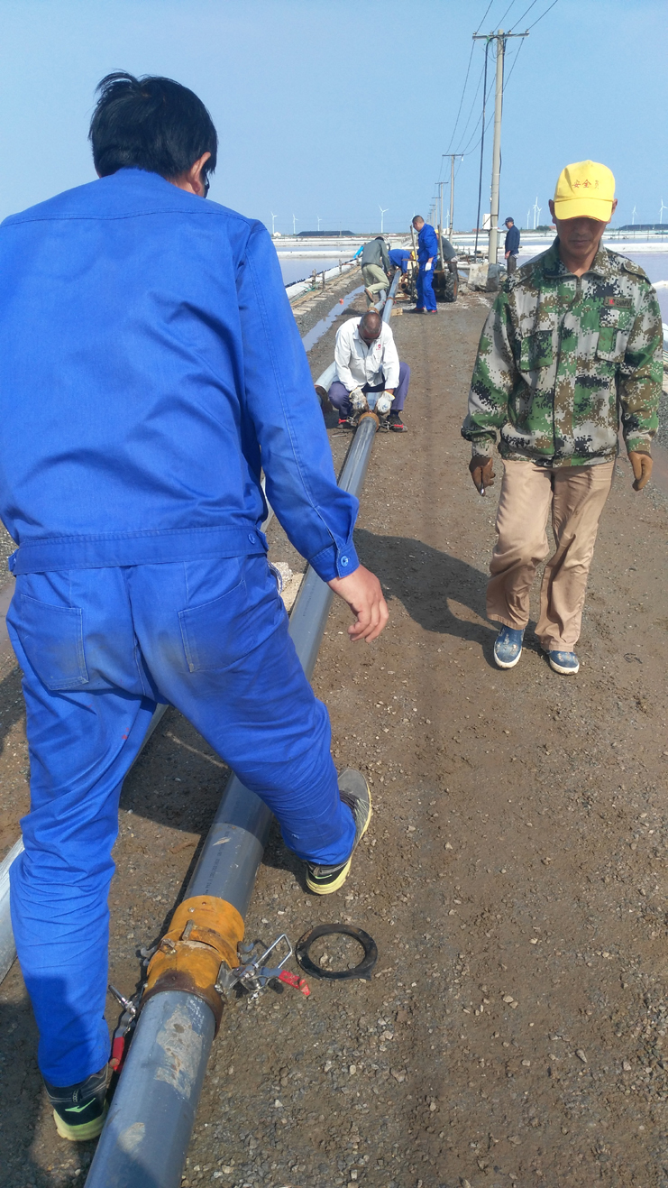 為節(jié)省扒鹽管道拆、裝時(shí)間,提高扒鹽速度,減輕扒鹽人員負(fù)荷,6月11日上午機(jī)電服務(wù)公司新制快接管道在埒南制鹽公司11班進(jìn)行現(xiàn)場(chǎng)實(shí)踐。他們放棄休息日,制作人員全員參與,市勞模王緒華、一星級(jí)員工程洪連、黨員楊軍,他們個(gè)個(gè)不怕臟和累,經(jīng)過一個(gè)多小時(shí)操作,管道安裝結(jié)束,在幾次調(diào)試后,扒鹽機(jī)組運(yùn)行正常。該快速接頭優(yōu)點(diǎn)是安裝、拆解快捷,節(jié)約成本,不足是皮墊易漏鹵。通過此次試運(yùn)行,對(duì)不足之處,該公司將繼續(xù)研究,爭(zhēng)取早日投入鹽業(yè)生產(chǎn),創(chuàng)造效益。(機(jī)電服務(wù)公司)