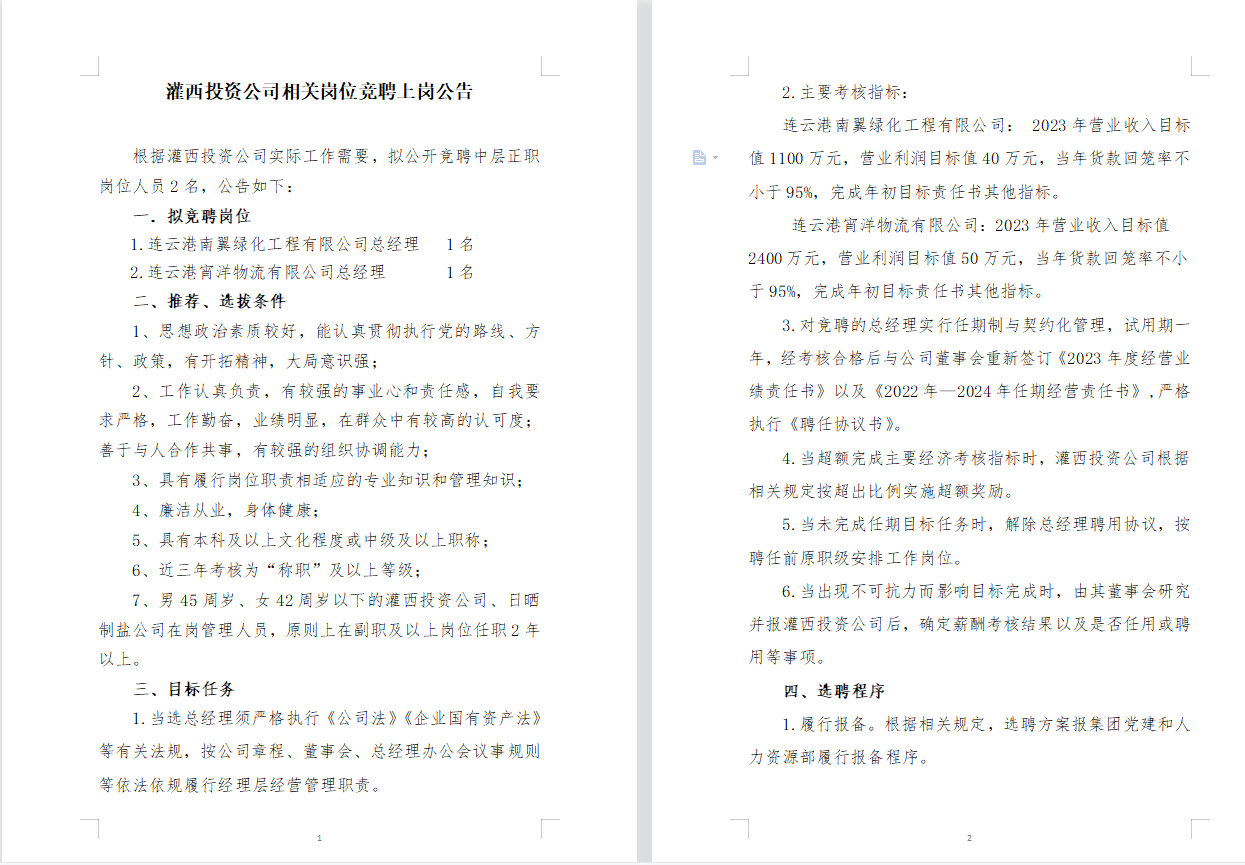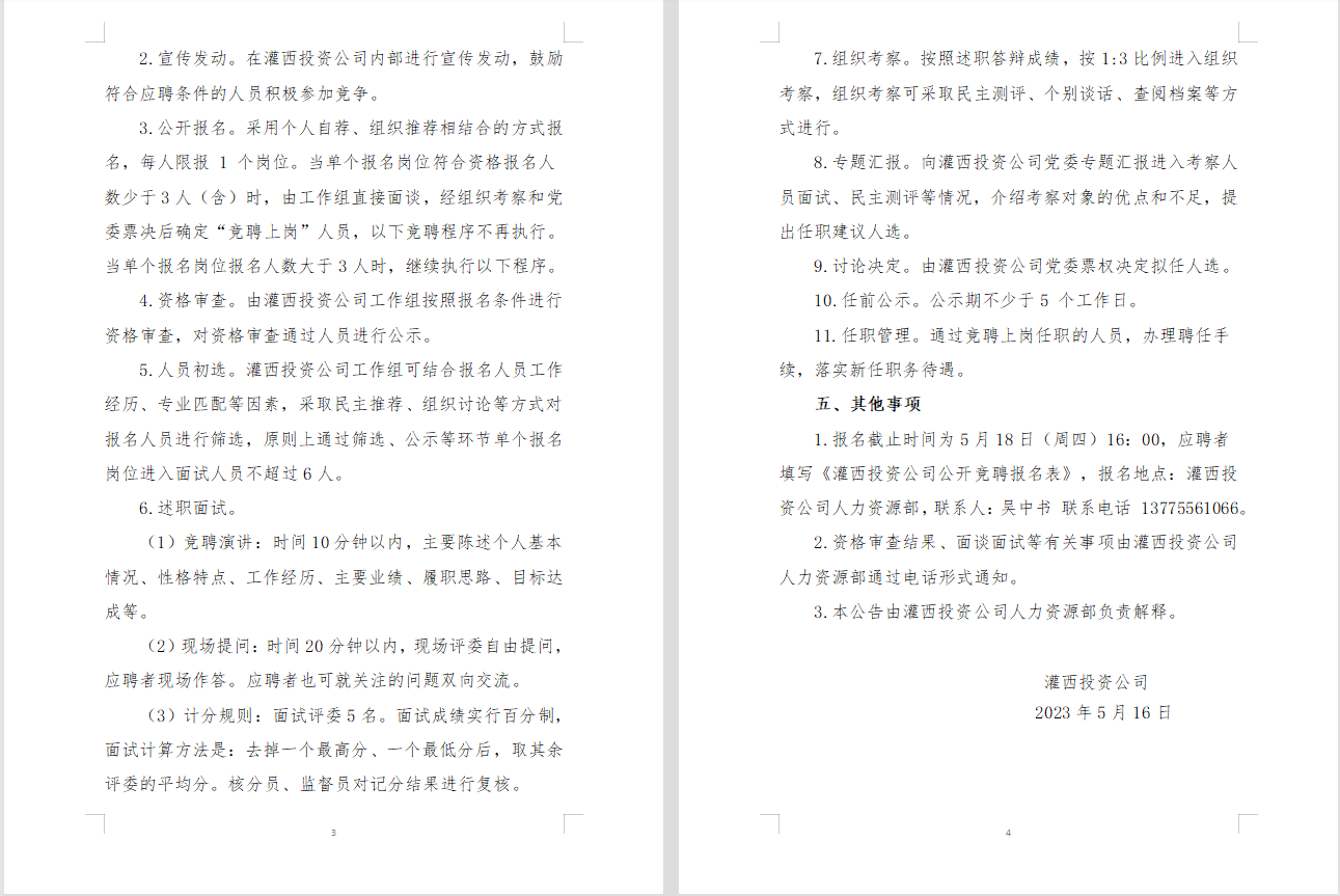 灌西投資公司相關(guān)崗位競聘上崗公告