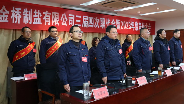 2月2日上午,金橋制鹽公司召開三屆四次職代會暨2023年度表彰大會。公司黨委書記、董事長、總經(jīng)理田磊作《工作報(bào)告》,黨委副書記、紀(jì)委書記、工會主席曹開明主持大會,公司領(lǐng)導(dǎo)班子成員及職工代表出席會議。