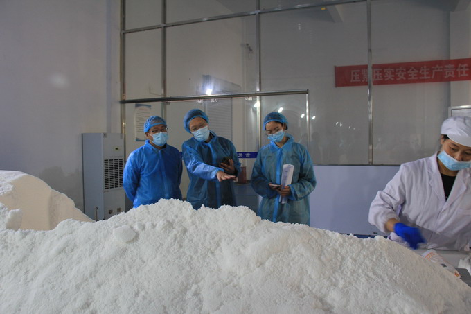 檢查組一行查看了公司相關(guān)臺賬資料,實地查看了加工鹽車間、包裝鹽車間、雪花鹽車間、化驗室等;檢查組一行對我公司食品安全管理工作給予肯定,并對下一步隱患排查整改工作提出了意見和建議。