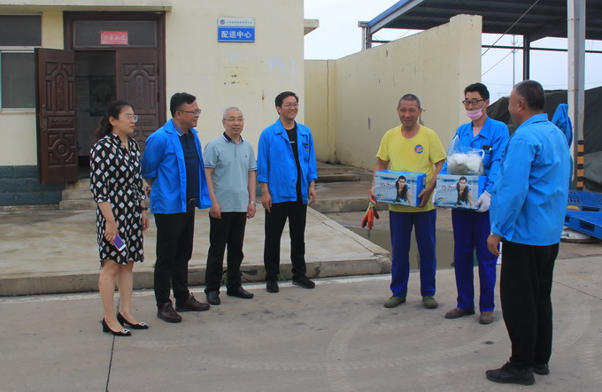 6月24日,我公司工會(huì)開(kāi)展夏季“送清涼”活動(dòng),黨委副書(shū)記、工會(huì)主席曹開(kāi)明、副總經(jīng)理張學(xué)峰和田磊一行,為高溫下的一線(xiàn)職工送去了綠豆、白糖、飲料、茶葉等防暑降溫品。