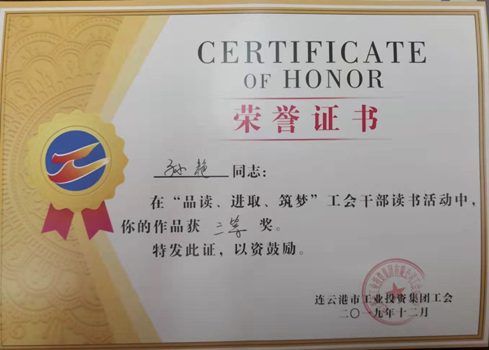 孫艷同志獲集團工會讀書活動三等獎