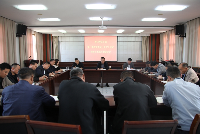 10月23日下午,青口投資公司召開三季度安委會(擴(kuò)大)會議暨秸稈禁燒會議。公司黨委書記、董事長、總經(jīng)理史祥平,副總經(jīng)理?xiàng)钋嗨桑鲉挝回?fù)責(zé)人、安全員以及安委會成員參加會議。