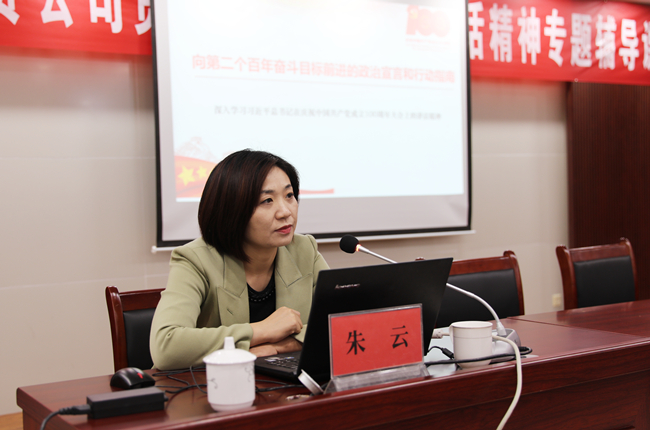 為了深入學(xué)習(xí)貫徹習(xí)近平總書記在慶祝建黨100周年大會上的重要講話精神,進(jìn)一步教育引導(dǎo)全體黨員干部學(xué)黨史、悟思想、辦實事、開新局,不斷從黨史中領(lǐng)悟前進(jìn)的智慧和力量。10月21日下午,青口公司舉辦貫徹建黨100周年講話精神專題輔導(dǎo)課,邀請市委黨校法政教研室主任,黨史學(xué)習(xí)教育市委宣講團(tuán)成員朱云同志作專題輔導(dǎo)課。公司領(lǐng)導(dǎo)班子成員、各單位黨政工負(fù)責(zé)人、機關(guān)全體管理人員以及基層單位在職黨員參加。會議由黨委副書記梁永主持。