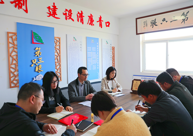 “剛剛為大家頒發(fā)了聘書(shū)和工作證,從現(xiàn)在起你們就是青口紀(jì)檢隊(duì)伍的一員了,希望大家要真正發(fā)揮出監(jiān)督員的職能,為建設(shè)清廉青口作出貢獻(xiàn)……”公司紀(jì)委書(shū)記朱文兵在監(jiān)督員聘任暨第一次工作會(huì)議上強(qiáng)調(diào)。