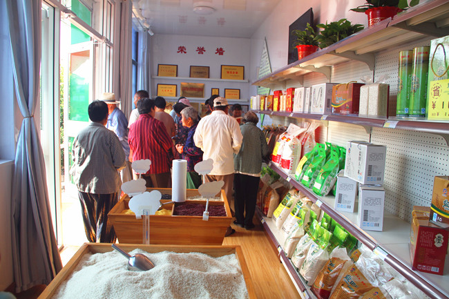 展銷中心主要展示銷售公司“鹽田玉”系列產品,清香米、富硒米、喜米等不同種類規(guī)格大米均在展銷之列,極大方便了周邊居民選購。