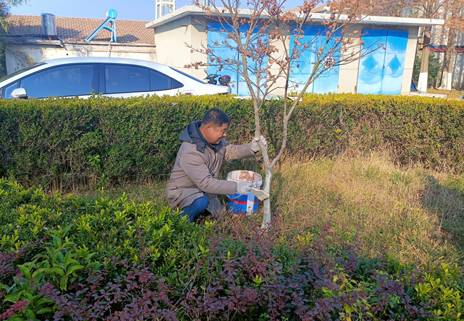 泰祥公司對(duì)場區(qū)綠化樹木越冬進(jìn)行 “涂白”
