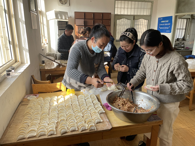 ? ? ? ?在女工委的號(hào)召下,公司女工紛紛來(lái)到公司食堂,她們個(gè)個(gè)熱情高漲,圍坐在一起展示包餃子手藝。大家齊心協(xié)力、相互配合,有的揉面,有的搟面皮,有的包餃陷,忙的不亦樂(lè)乎,一排排獨(dú)具個(gè)性的餃子很快就擺滿了一個(gè)個(gè)盤(pán)子。現(xiàn)場(chǎng)氣氛和諧、歡聲笑語(yǔ)不斷,到處洋溢著家的味道、家的溫馨。(女工)
