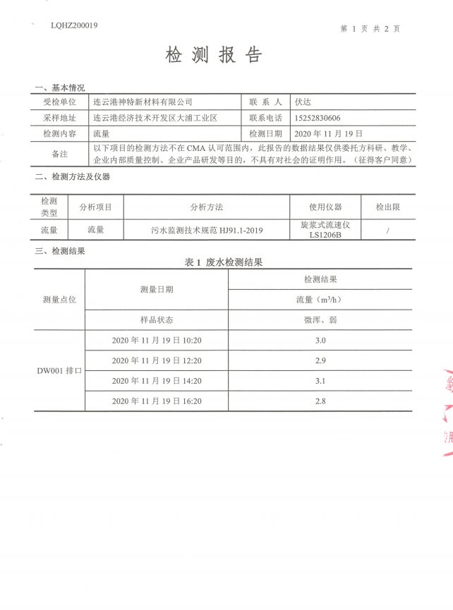 神特公司檢測報(bào)告公示