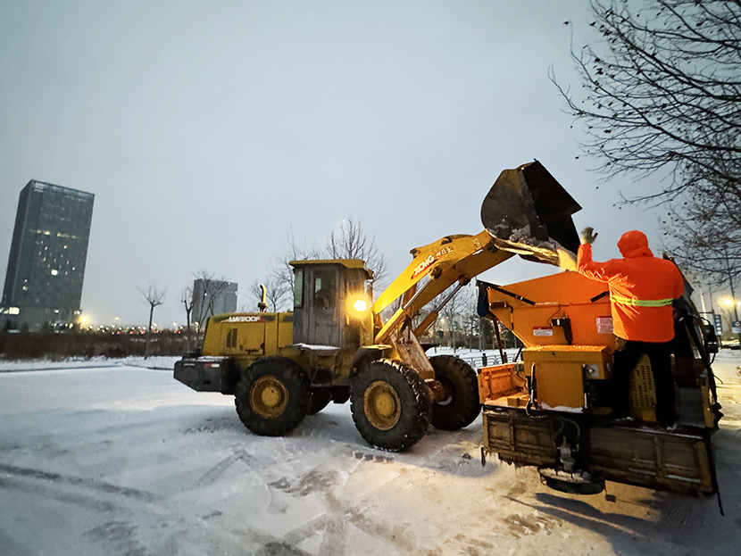 ? ? 此次掃雪除冰行動,采用人機結(jié)合方式,調(diào)派鏟雪車、裝載機等機械設備,對東方大道、黃海大道、花果山大道、242省道等主要干道人行便道、交叉路口,新海連大廈、火車站東站等重要地段的路面冰雪進行突擊清理;對各條干道的橋面及馬山立交橋、新光路下穿立交等坡度路面鋪灑氯化鈣除雪劑融化冰雪。