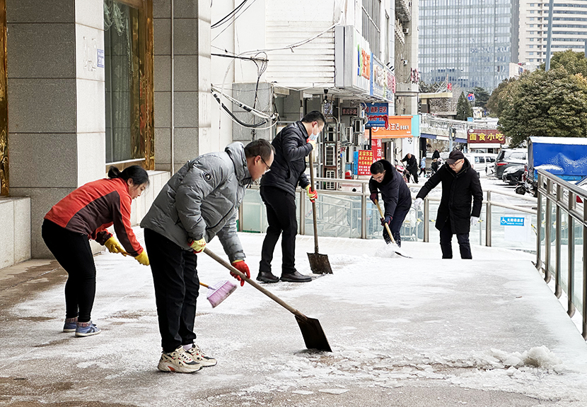 ? ? 機關(guān)管理人員全員出動,與東園社區(qū)聯(lián)動,掃除街邊、道路、小區(qū)、商鋪等門前積雪,確保周邊居民出行安全。