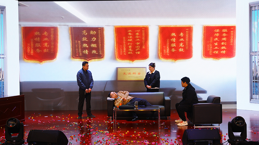 演出在舞蹈《祖國你好》中拉開序幕,隨后,一個(gè)個(gè)歡快、喜慶、祥和的文藝作品相繼上演。這其中,既有充分展現(xiàn)臺(tái)北發(fā)展力量的情景劇《我們是臺(tái)北力量》《南泥灣暢想》,也有大氣磅礴的男女對(duì)唱《不忘初心》和小合唱《眾人劃槳開大船》,有草原氣息的笛子獨(dú)奏《牧民新歌》,諷刺當(dāng)下“躺平式”干部的廉潔作風(fēng)小品《坑》,展現(xiàn)公司活力的男團(tuán)《舞蹈:串燒》《山丹丹花開紅艷艷》,奇特、神秘的魔術(shù)表演,一腔情懷的京劇《沙家浜-唱段軍民魚水情》……最后,在機(jī)關(guān)全體人員帶來舞蹈《相親相愛的一家人》中落幕,高潮迭起、精彩不斷,得到廣泛好評(píng)。