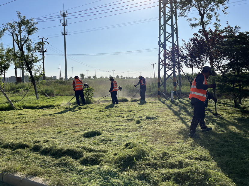 斗酷暑 陽光很烈,他們很美。滾滾熱浪,高溫“烤”驗。“炎”值爆表,室外溫度38℃,地表溫度飆升到50℃,城市像一個巨大的“蒸籠”,空調(diào)房里的人們望門止步。但是,有一群與太陽肩并肩不服“暑”的鐵“汗”子,他們用黝黑皮膚擦亮奮斗的底色。你可以在小區(qū)里看到他們頭頂驕陽找路徑、穿網(wǎng)線、做網(wǎng)絡(luò);可以在東方大道上看到他們冒著紫外線的灼烤,忙著栽種草苗、除草澆水;可以在大浦路上看到他們腳踩滾燙瀝青,忙著轉(zhuǎn)移交通桿;可以在花果山大道上看到他們汗流浹背,背著割灌機忙著打草。一件件浸透汗?jié)n的工裝,一句句樸實無華的話語,一份份汗水淋漓的擔(dān)當(dāng)……翔立每位員工都在發(fā)揚“特別能吃苦、特別能戰(zhàn)斗、特別能奉獻(xiàn)”的鐵軍精神,攥緊拳頭,埋頭苦干。