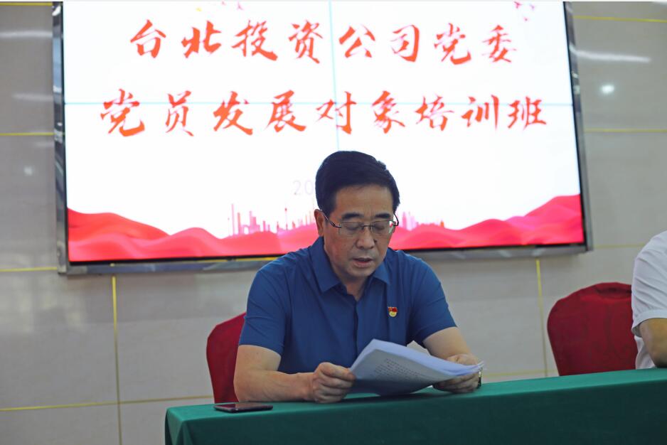 為強化黨員發(fā)展對象教育培養(yǎng),提升發(fā)展黨員質(zhì)量,近日,投資公司在廉政教育活動室開展黨員發(fā)展對象培訓(xùn)班。按照要求,公司黨委安排了臺北形勢任務(wù)宣講、黨內(nèi)法律法規(guī)解讀、《中國共產(chǎn)黨章程》以及百年黨史等培訓(xùn)內(nèi)容。黨委副書記楊善革作開班動員講話。