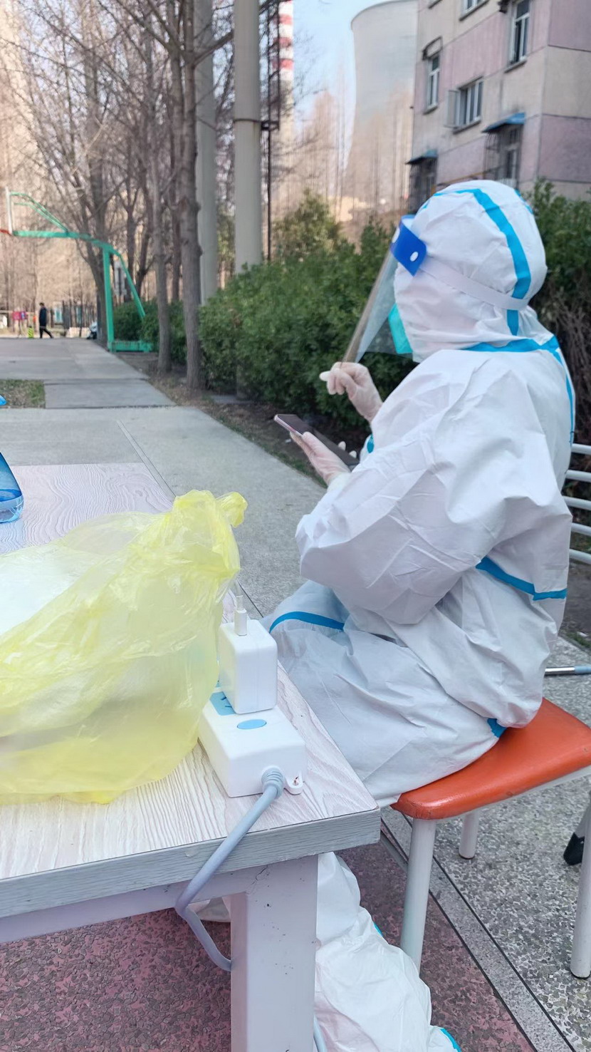 3月8日,臨時黨支部成立,黨員志愿者們隨即奔赴社區(qū)核酸檢測現場。當天,志愿者們穿上防護服。“你好,請戴好口罩,出示健康碼。”“你好,這邊人比較少,請往這邊走,保持一米距離。”維持現場秩序、檢查健康碼、登記核酸個人信息……志愿者們堅守在各自責任區(qū),細心、耐心回答居民們的各類問題,忙得連喝水的時間都沒有。細致周到的服務、無私的奉獻精神,得到了社區(qū)居民們的一致認可和贊揚。
