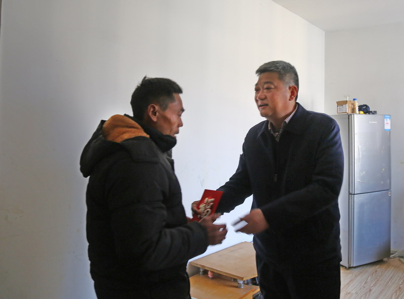 近日,集團(tuán)公司黨委書記、董事長(zhǎng)楊龍,集團(tuán)公司副總經(jīng)理匡友本來我公司走訪慰問參加過抗日戰(zhàn)爭(zhēng)的老黨員廖壽康和困難職工,向他們致以新春祝福和美好祝愿。投資公司黨委書記、董事長(zhǎng)、總經(jīng)理王德志,黨委副書記、工會(huì)主席楊善革陪同慰問。