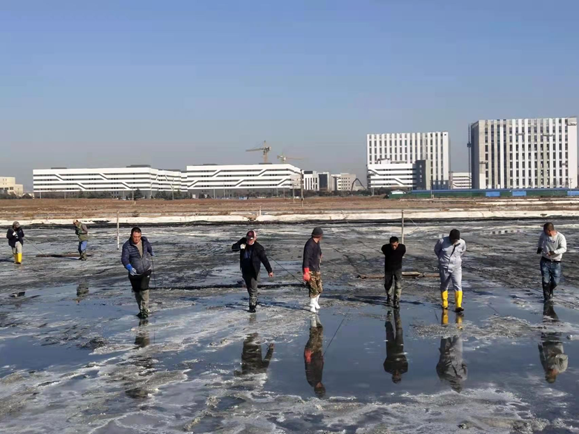 ? ? ? 截至目前,海州灣公司已完成大浦班組550公畝,8塊結晶池的池板找平工作,為下一步礦鹵灌池開好局起好步,其他各項工作按序時進度逐步推進。