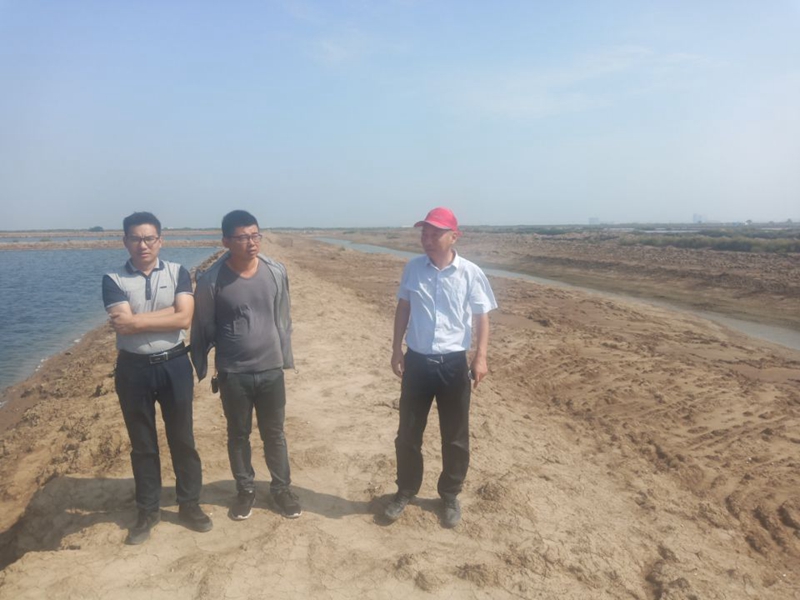 養(yǎng)殖池邊,工作人員仔細的對河道清淤進行現(xiàn)場勘查,確保排水通暢。