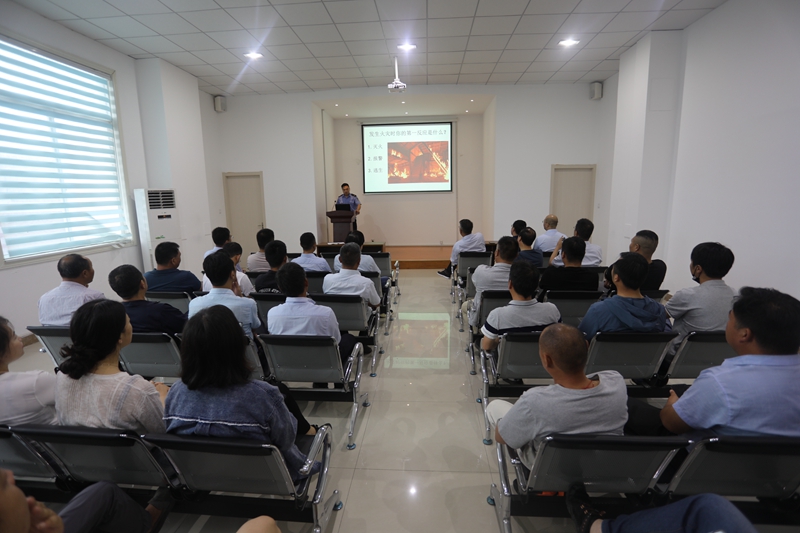 董教員結(jié)合近年來出現(xiàn)的各種火災(zāi)事故典型案例,對(duì)火災(zāi)發(fā)生的常見原因、報(bào)警時(shí)應(yīng)注意的問題、各類型火場(chǎng)中特色的逃生技巧、以及如何組織人員疏散,火場(chǎng)自救方法及滅火器的使用、車輛電器火災(zāi)的特色處理等知識(shí)進(jìn)行了深入淺出的講解,通俗易懂地給大家上了一堂消防安全課。