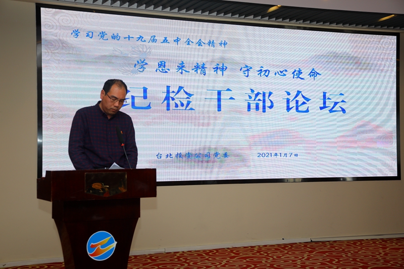 “感受偉人風(fēng)范,踐行初心使命……”從臺(tái)北投資公司十樓會(huì)議室里傳來鏗鏘有力的演講聲。為深入推進(jìn)“學(xué)恩來精神、守初心使命”專題教育活動(dòng),鍛造忠誠干凈擔(dān)當(dāng)?shù)?/span>紀(jì)檢干部隊(duì)伍,17日下午,公司舉辦紀(jì)檢干部專題大講堂公司領(lǐng)導(dǎo)班子成員,各單位、部門中層副職以上管理人員參加了活動(dòng)。