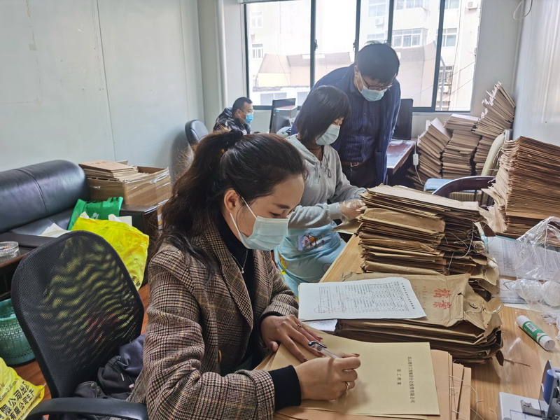 在檔案整理現(xiàn)場,大家通力配合,有的整理檔案、有的輸入電腦、有的仔細(xì)核對,加班加點(diǎn)做好退休人員基本信息和檔案整理、登記造冊等工作,有條不紊、熱火朝天。工作人員層層壓實(shí)責(zé)任,細(xì)化任務(wù)分工,編制移交清單,對各個(gè)時(shí)期的人事檔案材料及時(shí)進(jìn)行梳理、鑒別、整理、裝訂,確保內(nèi)容真實(shí)準(zhǔn)確、材料齊全完整。此次涉及移交檔案1580卷,已經(jīng)完成1300余卷,其余部分將于近期陸續(xù)完成。