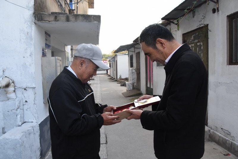解韻波同志今年83歲,19561月參軍,那年19歲,同年6月經(jīng)過短期高強(qiáng)度培訓(xùn),作為無線電通訊兵出國抗美援朝。1959年西藏達(dá)賴集團(tuán)發(fā)動(dòng)叛亂,剛回國不久的解韻波作為無線電技術(shù)兵種隨即跟隨大部隊(duì)入藏平叛。至今他仍保留著抗美援朝軍功章,入藏平叛軍功章、紀(jì)念章等。1962年退伍分配至臺(tái)北鹽場(chǎng)工作,1997年退休。今天慰問的時(shí)候,在鄰居們的簇?fù)砗推G羨之中,還沒進(jìn)家門,鄰居們就迫不及待地要求打開“紀(jì)念章”一睹風(fēng)采。紀(jì)念獎(jiǎng)?wù)聮煸诶蠎?zhàn)士胸前,一眾鄰里夸贊不斷:這份榮譽(yù)沉甸甸的。這份榮譽(yù)是拿命換來的。這是不得了的榮譽(yù)啊。這樣的老兵是我們的寶貝哦,我們要尊敬啊。……就在小區(qū)活動(dòng)廣場(chǎng)上,老戰(zhàn)士與大家暢談起保家衛(wèi)國光榮的戰(zhàn)斗經(jīng)歷,烽煙往事歷歷在目。退伍后,不褪軍人本色,幾十年如一日立足家鄉(xiāng)建設(shè),為臺(tái)北鹽場(chǎng)奉獻(xiàn)青春,為國家建設(shè)貢獻(xiàn)力量。大家對(duì)解韻波老戰(zhàn)士的革命戰(zhàn)斗和建設(shè)祖國的歷程表示由衷贊嘆和敬佩。