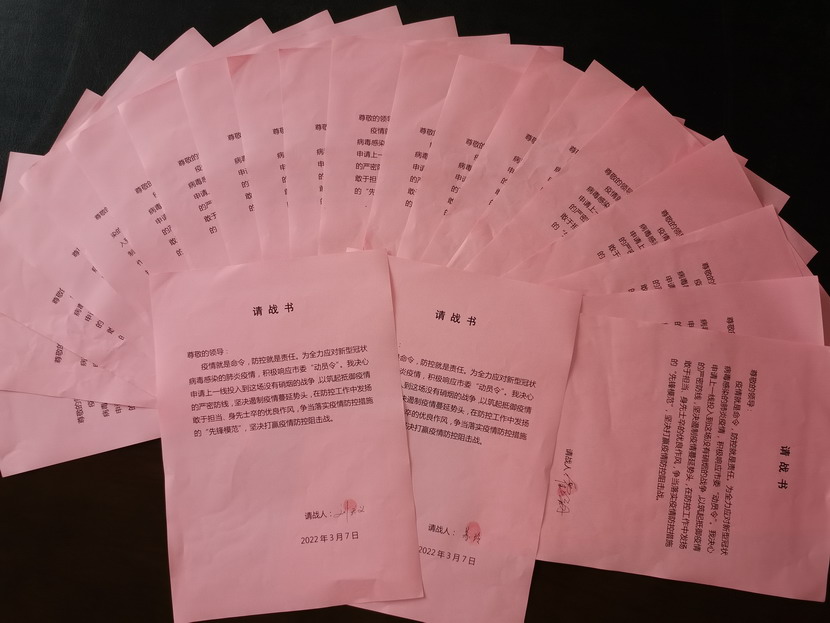 在黨員帶動下,群眾也紛紛行動起來。“還有我們,我們雖然不是黨員,但是我們也想為抗疫貢獻自己一份力量......”優(yōu)秀職工沈秀成、邱榮濱、韓永剛、占恒春如此說道。“我決心申請上一線投入到這場沒有硝煙的戰(zhàn)爭,以筑起抵御疫情的嚴密防線,聽從組織的統(tǒng)一指揮與安排,不計得失,無論生死,絕不退縮......”,42名志愿者在請戰(zhàn)書上簽上自己的名字并按下手印,紛紛表示,隨時準備著黨中央的召喚,祖國的召喚,一聲令下,立即奔赴抗戰(zhàn)一線。