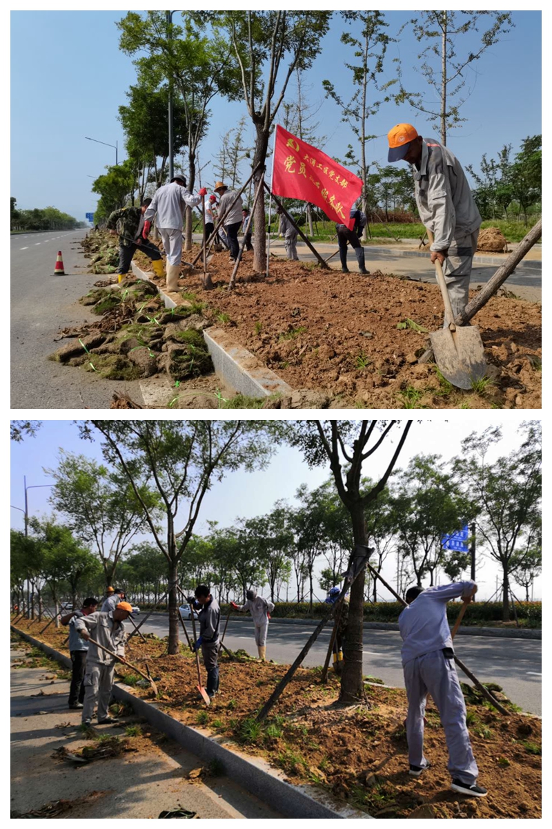 末伏天,熱浪席卷全身,太陽瘋了似的肆虐著萬物,即使是狂風暴雨的降臨也只能緩解一時的沉悶。8月18日上午,大浦支部黨員突擊隊臨危受命,奔赴匯晶北路綠化帶助力翔立分公司突擊鋪設草皮工程任務,攜手共建美麗連云港。