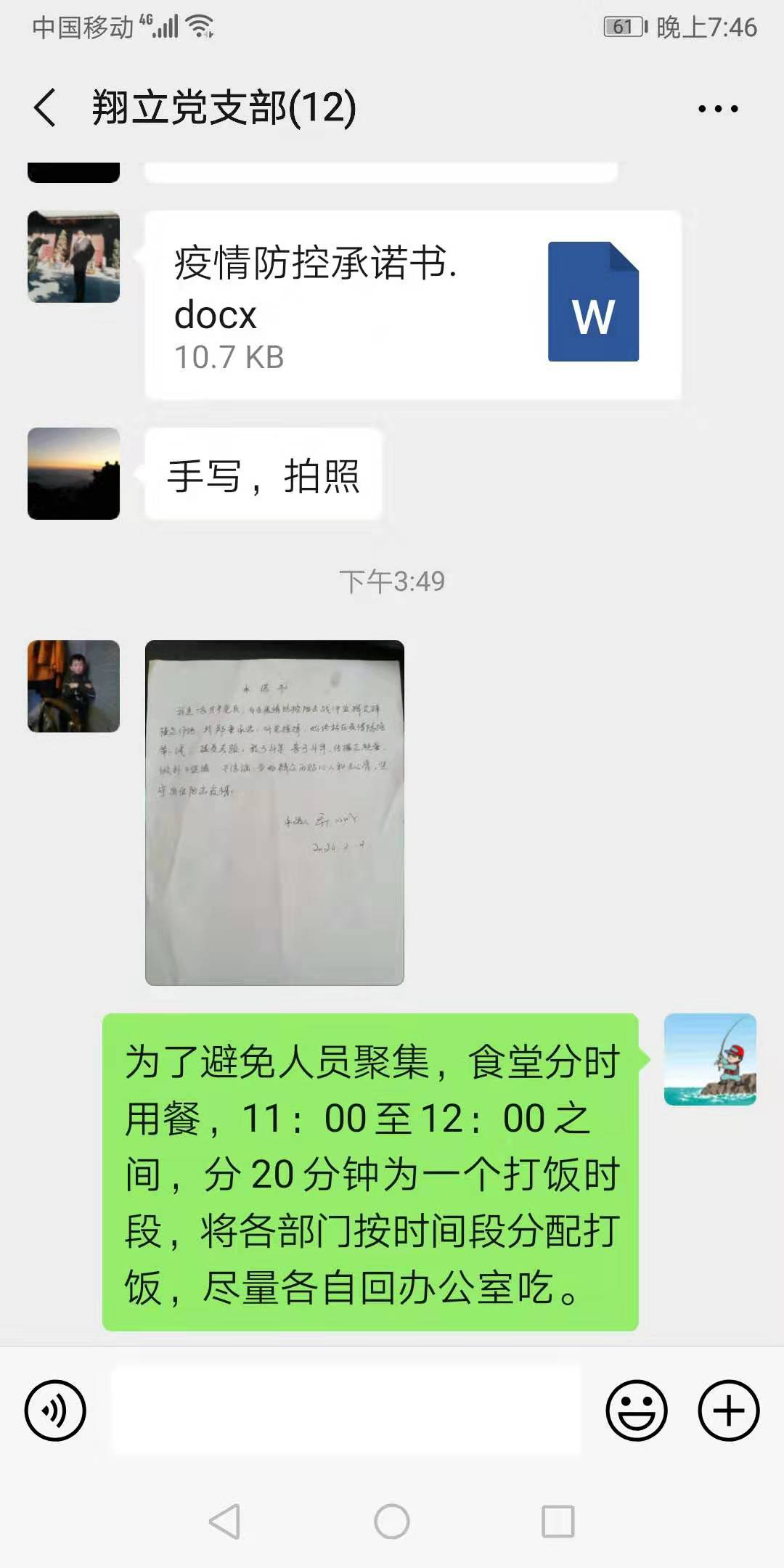 開展疫情防控建言獻(xiàn)策活動。根據(jù)公司要求,翔立支部利用支部微信群,QQ辦公群等媒體工具,組織開展了“疫情防控我承諾”,根據(jù)疫情防控要求全體管理人員和黨員同志們簽下承諾書。根據(jù)各崗位特點(diǎn)全員開展“我為疫情防控出份力”活動,號召大家出謀劃策,暢所欲言將好的做法,合理的建議等進(jìn)行討論,使大家積極參與到“我為疫情防控獻(xiàn)一策”等活動中。