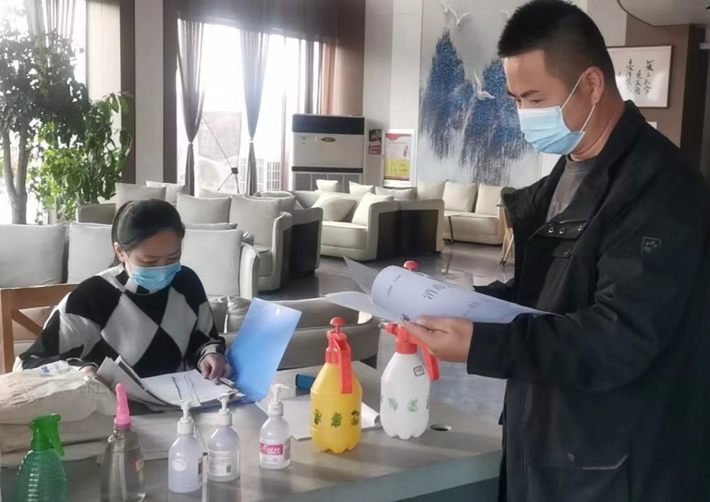 嚴(yán)格把好蘇豪酒店、院內(nèi)、貨場(chǎng)等重要場(chǎng)所“卡口”關(guān),做到來(lái)訪人員經(jīng)查驗(yàn)“三碼”、測(cè)量體溫、登記信息,方可進(jìn)入。