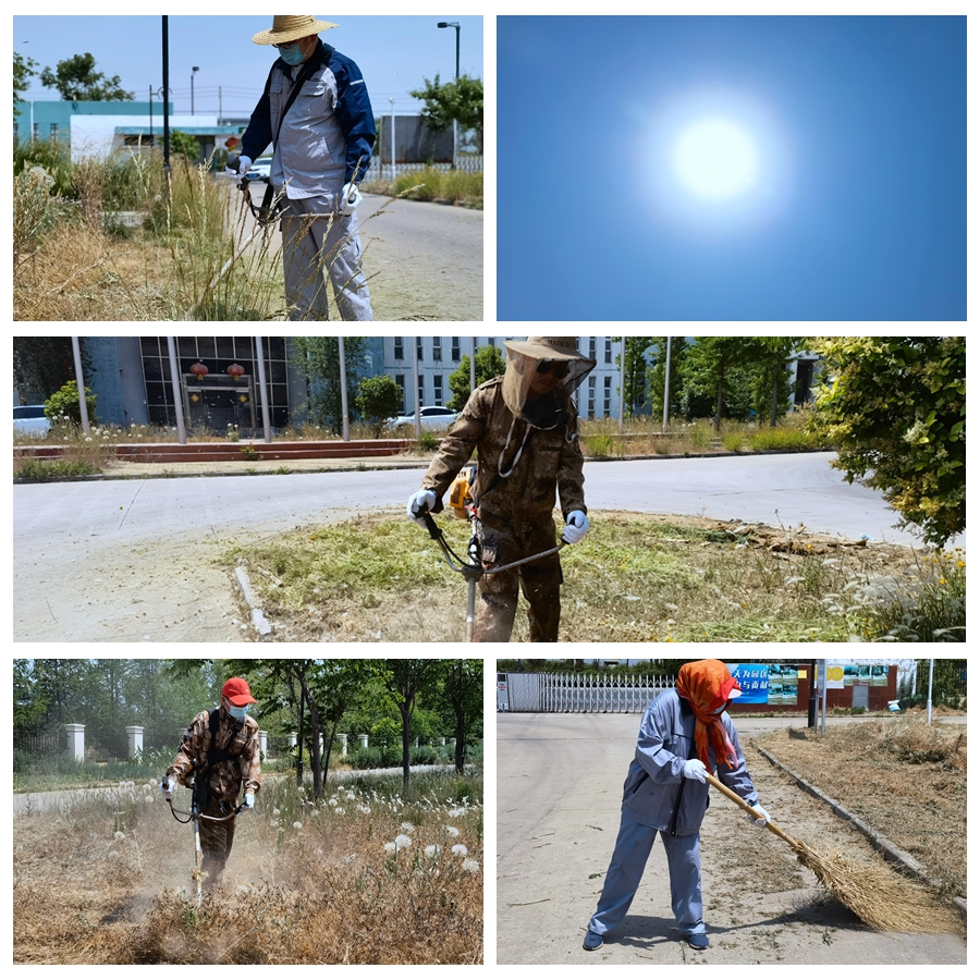 頭頂著炎炎烈日、忍受著蚊蟲叮咬,大伙使用打草機(jī)、鐮刀等工具,對(duì)雜草、高草進(jìn)行割除。走近細(xì)看,他們的臉上和手臂上都布滿,衣服早已濕透貼在身上除草過程中,草渣紛紛濺到他們的身上,但這絲毫沒能影響他們工作的節(jié)奏。伴隨著機(jī)器的轟鳴聲,一片片規(guī)格一致、邊緣平直的綠草坪映入眼簾,淡淡的清香綠草味撲鼻而來,整個(gè)綠地充斥著整潔的氣息。